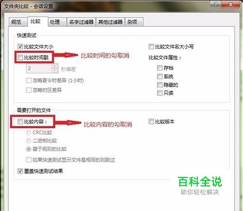 第一步,设置对比规则(点击工具栏戴黑帽的小人),设置比较,见下图 设置好后点击确定