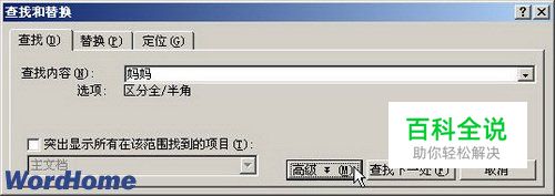 第2步,打开“查找和替换”对话框,在“查找内容”编辑框中输入要查找的文本内容,并单击“高级”按钮,如图2011061604所示。 图2011061604 单击“高级”按钮
