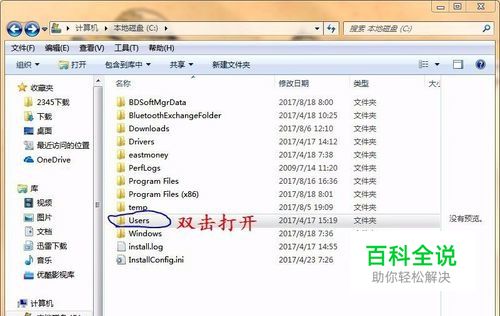 打开C盘找到Users文件夹,双击打开。