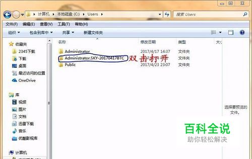 找到文件夹Administrator.(显示的是你的电脑名称),双击打开。