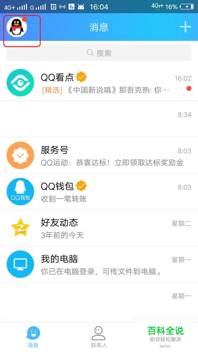 首先,我们打开手机QQ,登录自己的账号,然后点击左上角的头像。