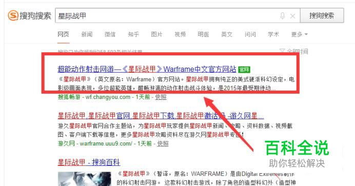 进入之后,搜索“星际战甲”,点击搜索结果并进入。