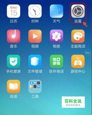 在手机主页面,找到“设置”点击并进入,如图所示。