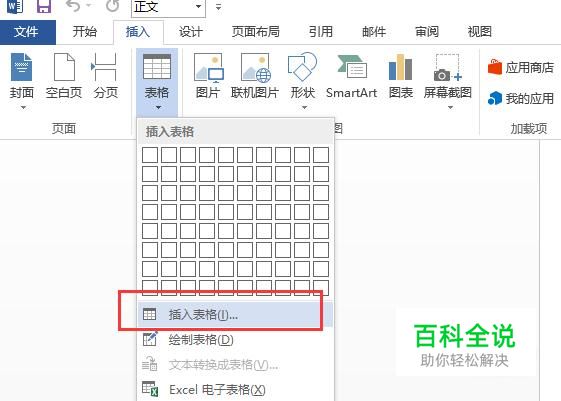 如果要插入的行列太多的话上面的方法就不行了,这时我们点击插入菜单,选择插入表格选项,如下图所示