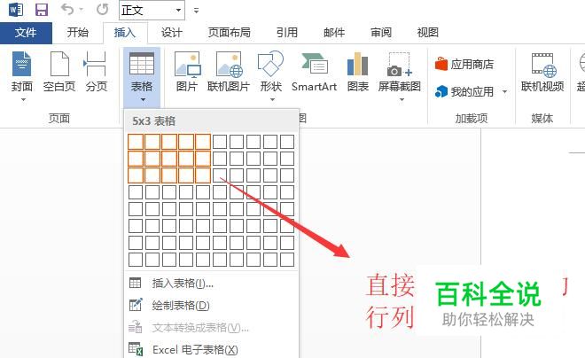 点击顶部的插入菜单,在下拉界面中我们直接用鼠标选择要插入的表格行列数量即可,如下图所示