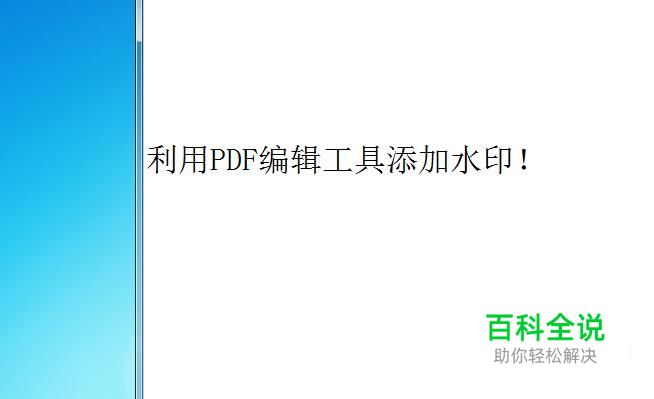 PDF编辑工具是一种专属于PDF格式文件的一种工具。在该工具中,可以对PDF格式的文件进行各种编辑整理。如:新建文档、添加图片、添加注释等等。今天小编就教给大家,如何在PDF编辑工具中添加水印。