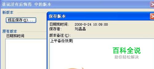 我们可以利用一个Word文件保存所有修改信息、保留所有修改文件的原貌。在建好了一个Word文件后,首先选择一下"文件"——"版本"——"现在保存",输入文档撰稿人、建档时间以及其他需要说明的事项,