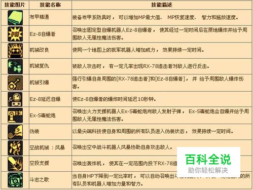 机械师特色职业技能 G-1科罗纳 在背后设置可进行无属性魔法攻击的辅助机器人科罗纳。Lv20的主动技能; G-1科罗纳保持一定间隔来自动攻击,机械师进行基本攻击的时候G-1科罗纳的攻击速度加快; 可以变成G-2旋雷者或者G-3捕食者; 越多使用其他G系列的功能,辅助机器人的攻击力增加。 改装:G-2旋雷者 把G-1科罗纳或G-3捕食者改装成可以进行无属性静电魔法攻击和无属性电波魔法攻击的3台旋雷者; 经过一定时间后旋雷者将会充满电能,此状态下的旋雷者会给予敌人一定伤害,且再次按技能键则可以向前发射电波攻击; 在G-1科罗纳或者G-3捕食者状态下可以变身; G-2旋雷者的持续时间遵守G-1科罗纳的持续时间; 越多使用其他G系列的功能,辅助机器人的攻击力增加 改装:G-3捕食者 粘在周围的敌人,持续给予魔法伤害,的35级主动技能; 在G-1科罗纳或者G-2旋雷者状态下可以变身; G-3捕食者的持续时间跟随G-1科罗纳的持续时间; 越多使用其他G系列的功能,辅助机器人的攻击力增加。 拦截机工厂 设置可以生产小型轰炸机的工厂,每隔一段时间就会生产出小型轰炸机攻击敌人。经过一段时间或工厂的HP降为0后拦截机工厂会消失,且拦截机工场消失时拦截机也会随之消失。在收到指令引爆后,拦截机会向指定地点发动自爆攻击。若拦截机消失,则工厂会生产新的拦截机。