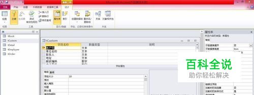 右键单击表“tCustom”, 选择“设计视图”快捷菜单命令,打开表设计视图。