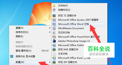 首先在自己需要的位置新建一个Word文件,点击鼠标右键,找到“【新建】”选项,点击进入,找到“【microsoft office Word文档】”,点击新建