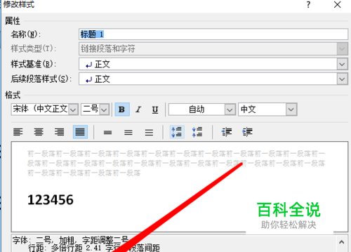 接着,我们用鼠标 右键单击一下我们的“标题1”样式,选择“修改”项目。(以“标题1”为例,“标题2”的操作基本一样)