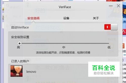 首先介绍一些相关的人脸识别程序,比如现在很多联想的笔记本里自带的VeriFace 下面就是VeriFace的程序界面,具有三个等级的人脸识别精度。