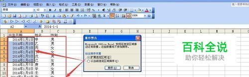 如果在满足日期排序的前提下,还要进一步按姓名、性别排序、那就需要在数据菜单下的排序命令实现,点击确定后即可完成多关键排序