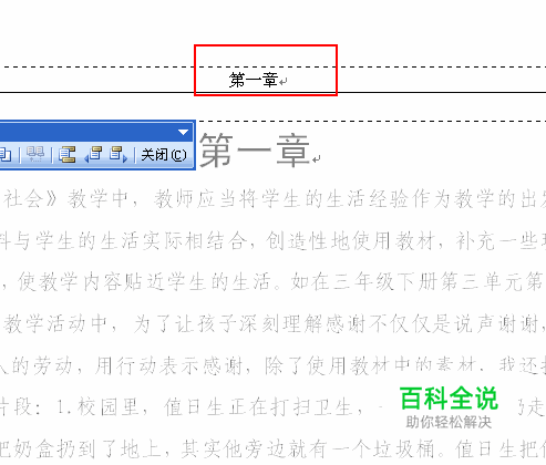 先在第一章里插入第一章要使用的页眉,如第一章。 同时,我们发现第二章的页眉也是第一章。