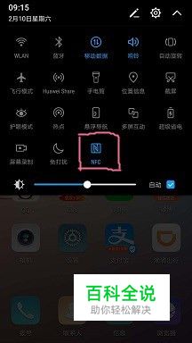 在手机设置中开启“NFC”功能,或者直接下拉屏幕界面,划出一个小界面,找到“NFC”开启;