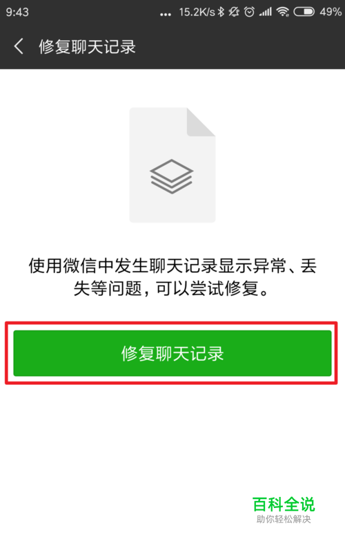 点击“修复聊天记录”即可。 (这个方法只能修复使用微信过程中出现异常导致的聊天记录损坏问题) 如果没有异常会提示“聊天记录没有异常,无需修复”