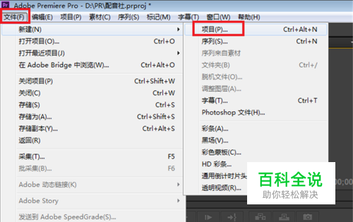 打开PR,点击左上角的〖文件〗-〖新建〗-〖项目〗,在弹出的页面中点击〖新建项目〗;