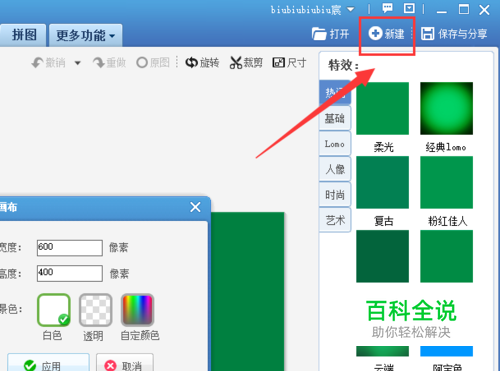 step1、打开修图软件,在右上角如下图所标识的位置,找到并点击【新建】,新建一张背景图。