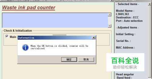 第四步,选中废墨计数器清零Waste ink pad countedr ,然后点击OK进入清零;