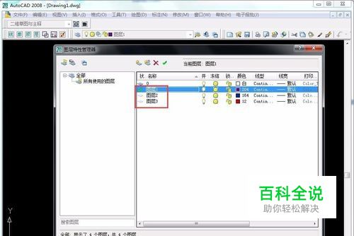 我这里先建一个简单的CAD。 先建三个图层,我这里设置了不同的颜色,图层名称就是图层1、图层2、图层3.