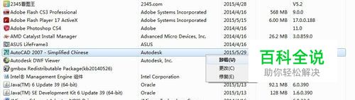 鉴于这里主要写的是注册表的删除,所以对于CAD软件本身的卸载问题就一笔带过了,不管你是在系统控制版面的程序删除里操作,或者利用软件管家删除,或者利用 windows installer clean up 软件都行。