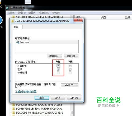 跳转回前一界面,把完全控制和读取两项勾选允许,然后确定。