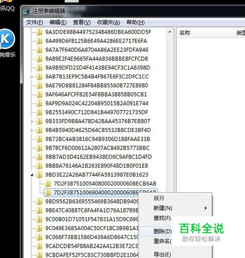 全部带有7D2F的都搜索出来了,注意辨别,比如说下图前面那几个7D2F位于字符串中间的就不是了,不要勿删。接着要做的是,把/7D2F...开头的键值进行删除。小编也曾天真的以为直接用该软件全选,然后删除就成了,结果反复删除几小时后才发现,对于很多注册信息,大师也是没有删除权限的。也就是说,我们依旧得进入注册表,进行手动一个个删除。