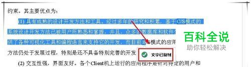提示复制成功后,选择的文本就已经被复制到内存中了,打开word中Ctrl+V进行粘贴即可得到文本。如果需要的文本较多,可多进行几次。