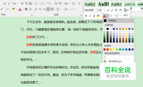 例如,我们打开一个文档,需要将文档中所有红色的文字(即“舒敏”)改为黑色,但这些文字的内容仍然保持不变。