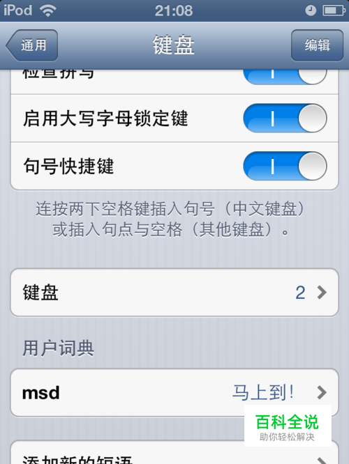 进入设置→通用→键盘