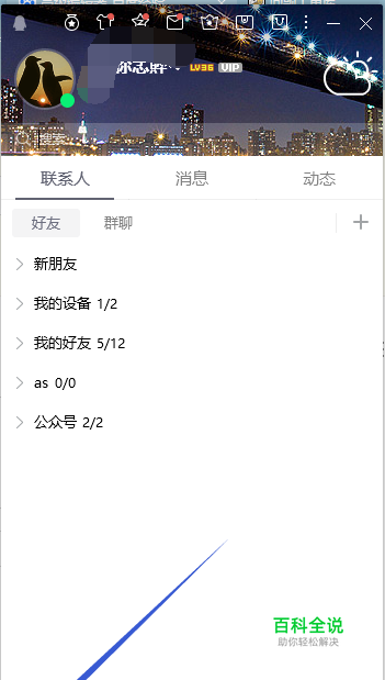 在电脑上登录自己的QQ后,显示QQ主面板,点击左下角的三条横线菜单。