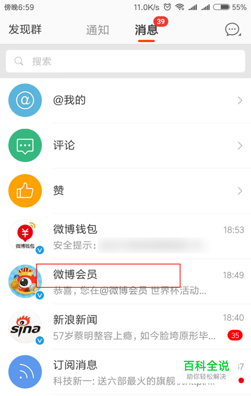 首先到微博手机客户端,选择“消息”栏找到“微博会员”