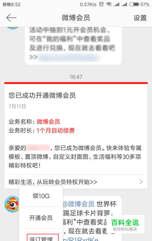点击“微博会员”对话框后,选择“会员服务”-“退订管理”