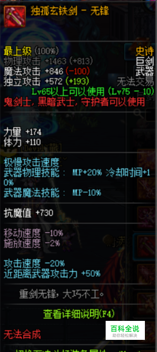 荒古巨剑,对于女王来说,是85甚至是90武器里面很顶尖的啦,我们要尽可能给女王弄上一把