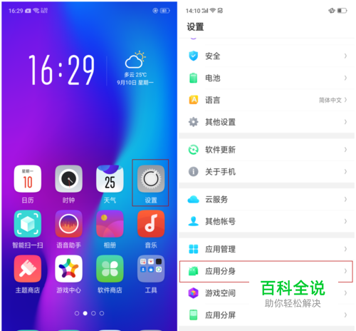 1、通过手机桌面的【设置】--【应用分身】进入。