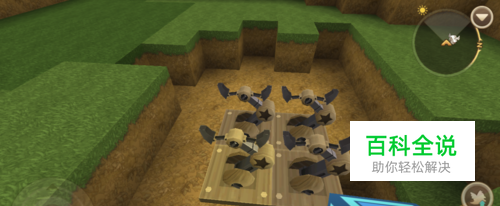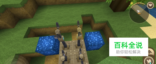 先在其周围放上电石快,会发现电石块旁边的机械臂就会自动升起来。然后我们可以利用这个机制,在机械臂上方铺上方块。
