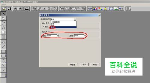打开蒙泰5.0软件,文件--建立新文件,弹出建立新文件对话框,设置出版物类型和尺寸,确定,新文件建立完成。