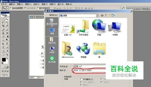 打开Photoshop软件,文件--打开--选择已经设计好的名片,文件--存储为--下单菜单选择TIFF格式并保存。