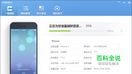 点击准备越狱后,XY越狱助手开始越狱;