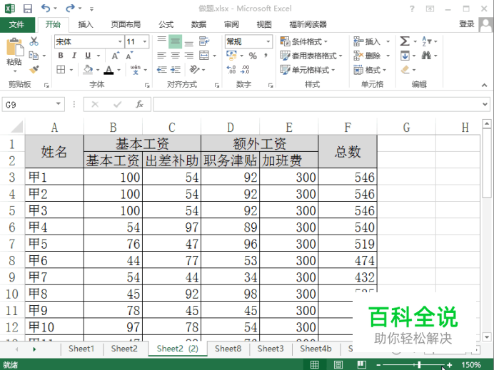 Excel2013如何制作双行表头有合并单元格工资条