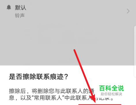 点击后,下方会弹出提醒,告知我们擦除后会删除联系人通话记录和信息。我们点击“擦除”就可以擦除联系人痕迹。