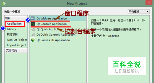 在打开的页面中,选中"Application”(应用程序),然后再根据需要选择“窗口程序”或“控制台程序”,然后点击“choose”(选择)按钮。
