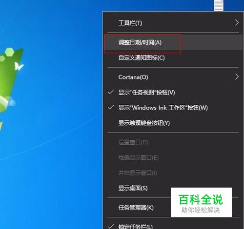 右键点击任务栏时钟,选择“调整日期/时间”