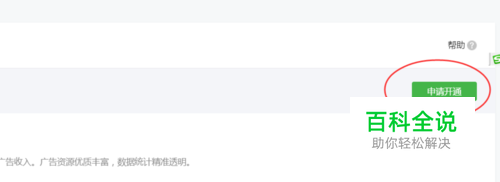 点击进入流量主页面后可以在页面右上角点击【申请开通】按钮,如下图