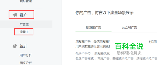 首先,查看流量主开通位置 。进入微信公众号后,点击左侧菜单中【推广】->【流量主】,如下图