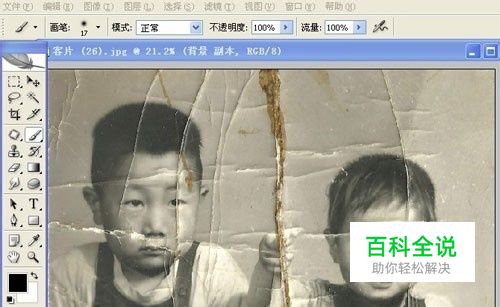 老照片修复教程:[10]修复兄弟俩破损老照片