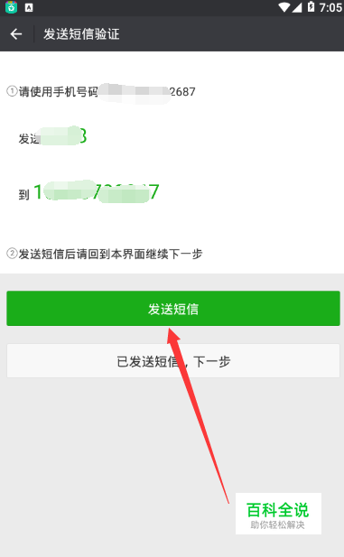 按照页面提示发送短信,如下图所示,操作后直接点击下一步即可