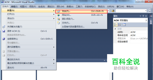 打开VS2010,点击菜单栏上的文件--》新建--》项目,如下图。
