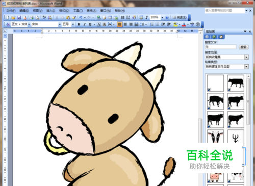 打开文档,插入一张图片,比如一头牛。