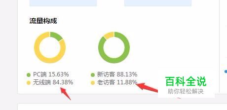 流量构成的占比图:可以看到PC端和无线端 ,还有就是新访客和老访客的比较。